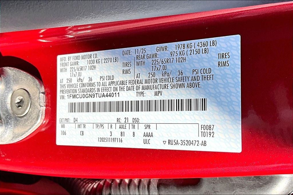 VIN: 1FMCU0GN9TUA44011