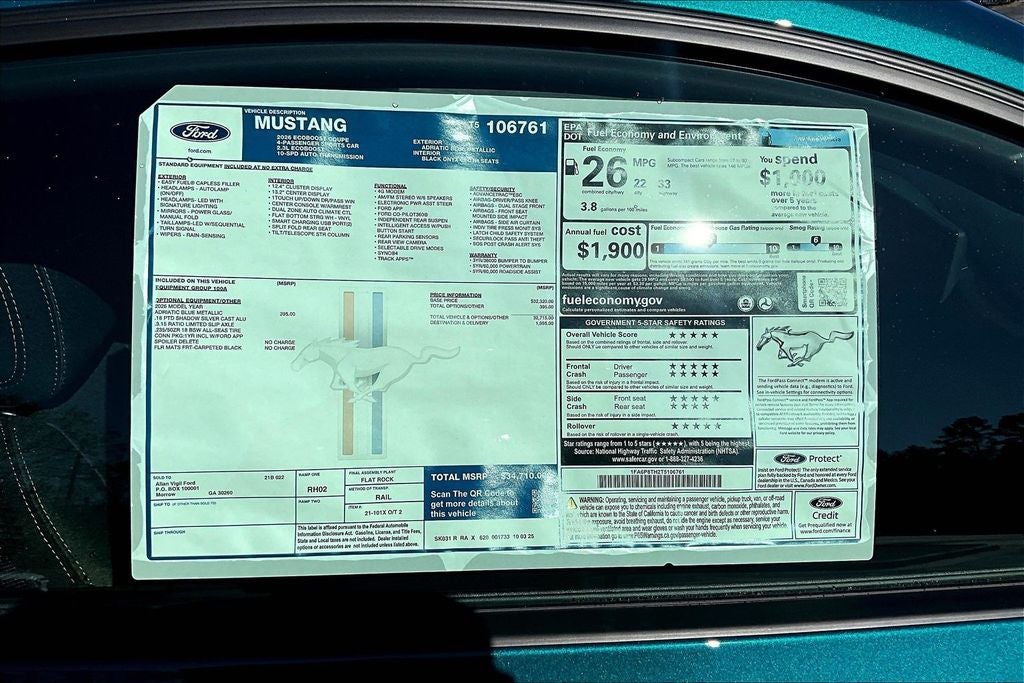Adriatic Blue Metallic 2026 Ford Mustang EcoBoost RWD 10-Speed Automatic EcoBoost 2.3L I4 GTDi DOHC Turbocharged VCT