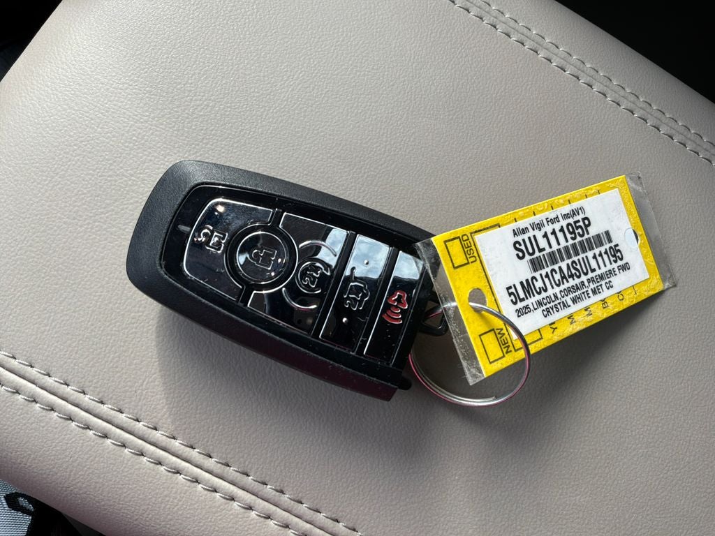Clean CARFAX. Crystal White Metallic Clearcoat 2025 Lincoln Corsair Premiere FWD 8-Speed Automatic 2.0L I4 18 Bright Machined Aluminum Wheels, 2 Additional USB Ports in Rear of Center Console, 60/40 EasyFold Rear Seat w/Power Seatback Release, Black Roof Rack Side Rails, Body-Color Exterior Elements, Equipment Group 101A, Frameless Auto Dimming Rearview Mirror, Hands-Free Liftgate, Heated Sideview Mirrors, Heated Steering Wheel, Heated/Ventilated Driver & Front Passenger Seats, Jet Appearance Package, Micro-Perf Lincoln Soft Touch Captain's Chairs, Navigation system: Connected Navigation (4-year trial), Panoramic Vista Roof w/Power Shade, Phone As A Key (PAAK), Pillar Black Exterior Elements, Power door mirrors, Power Liftgate, Power passenger seat, Power Tilt/Telescoping Steering Column w/Memory, Power windows, Rain Sensing Wipers, Remote keyless entry, Steering wheel mounted A/C controls, Universal Garage Door Opener, Windshield Wiper De-Icer, Wireless Charging Pad.